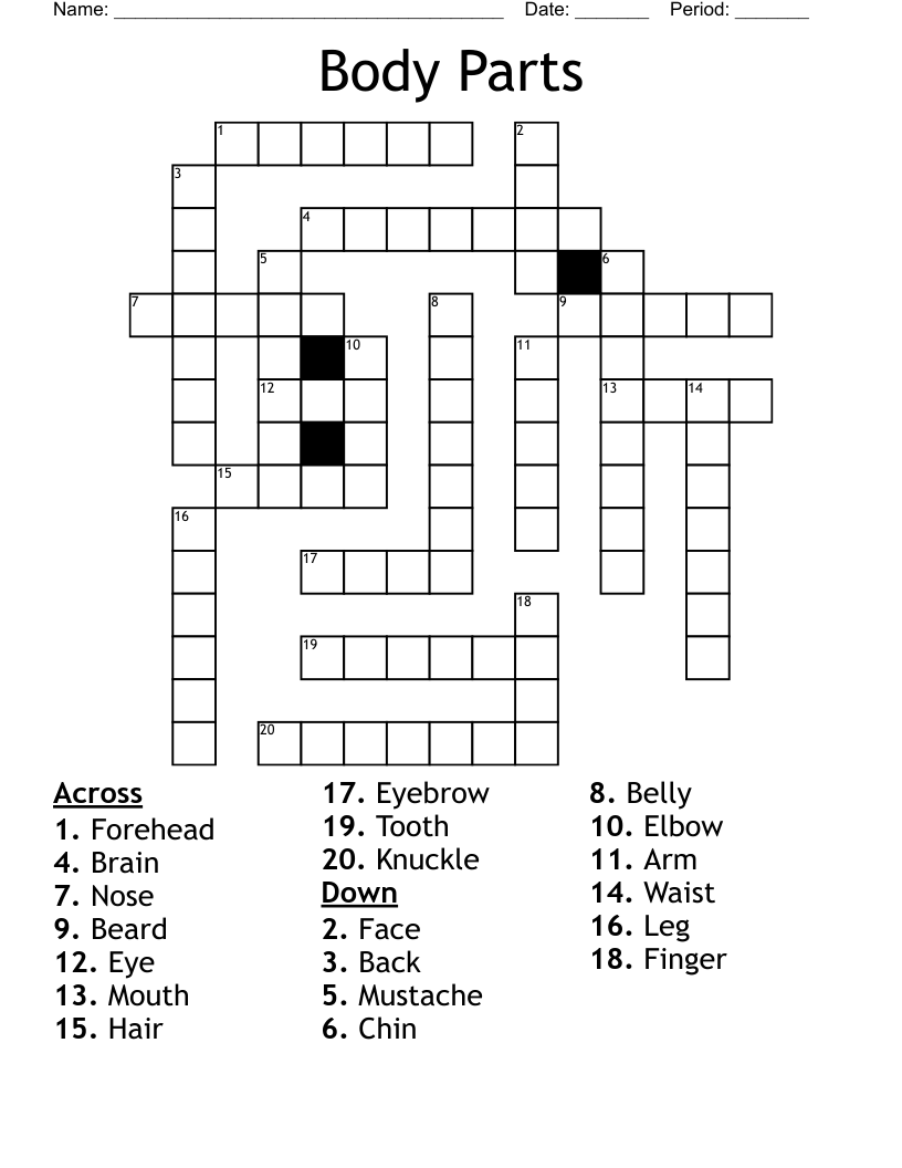 Body Parts Crossword Puzzle Printable