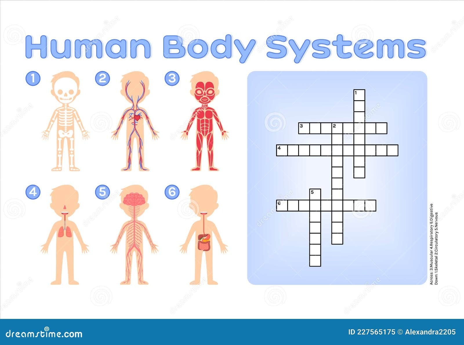 Crossword Puzzle For Children Human Body Systems Muscular Skeletal Nervous Digestive Respiratory Circulatory Stock Vector Illustration Of English Kids 227565175