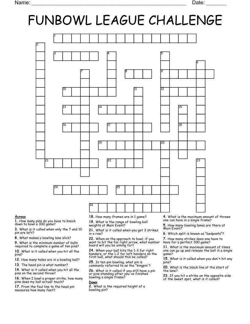 Whether you’re a seasoned bowler or just enjoy the occasional game with friends, this crossword puzzle is sure to keep you entertained for hours. Simply print it out, grab a pencil, and get ready to put your bowling knowledge to the test!