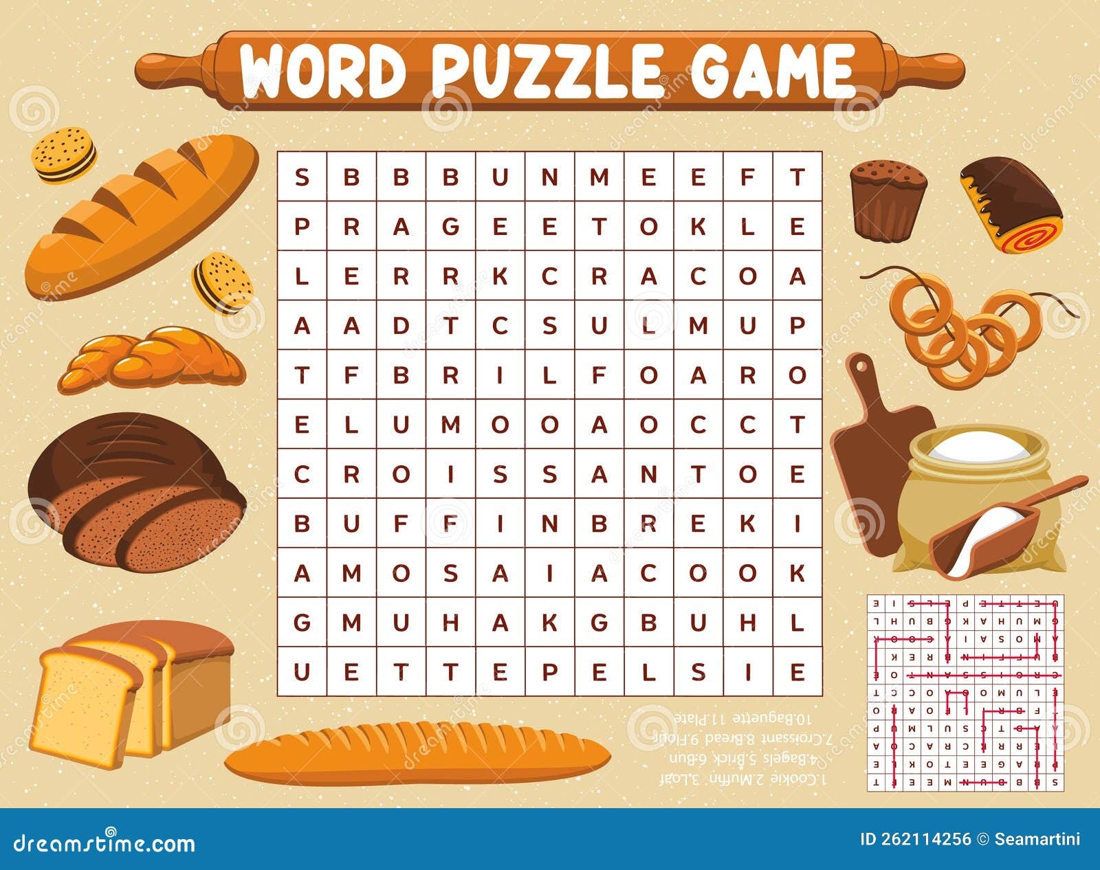 Flour Bread And Bakery Word Search Puzzle Game Stock Vector Illustration Of Letter Game 262114256