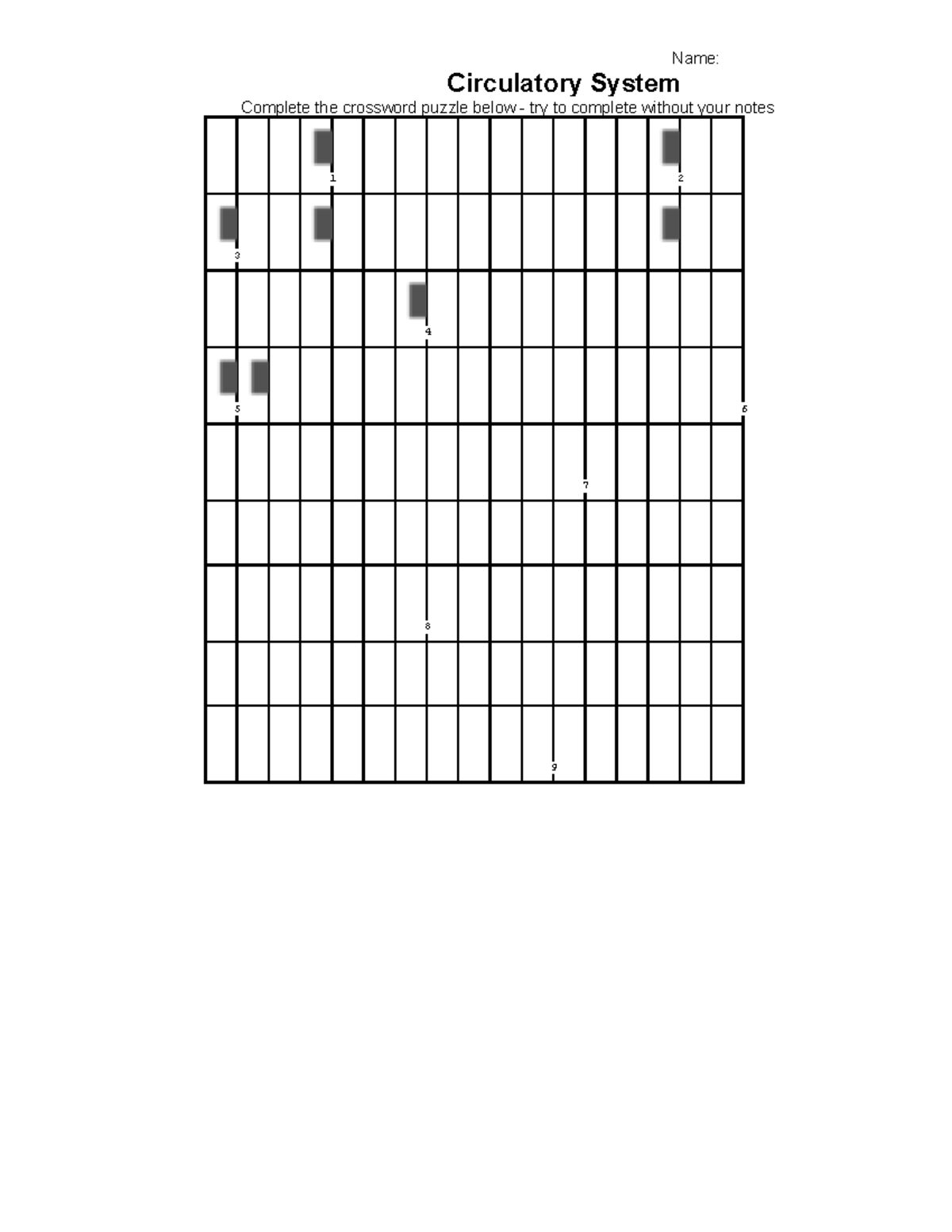 Circulatory Crossword Puzzle