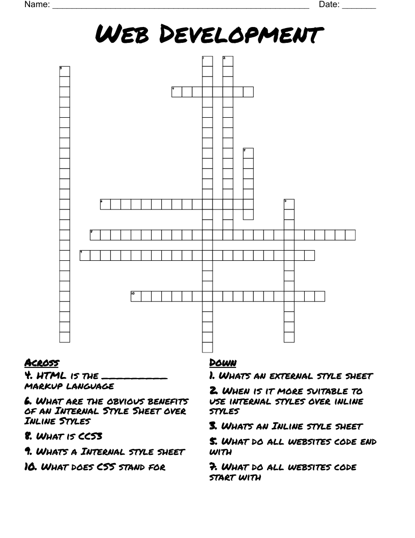 Cascading Style Sheets Crossword WordMint