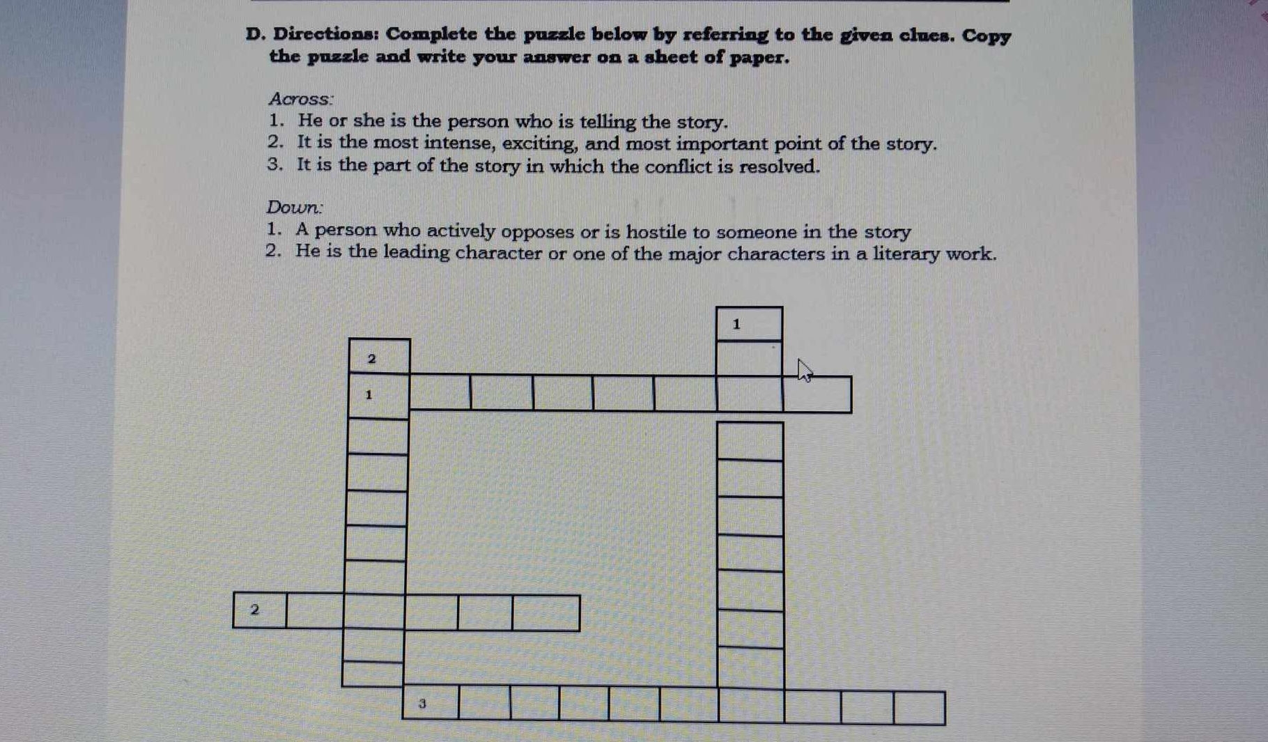 D Directions Complete The Puzzle Below By StudyX