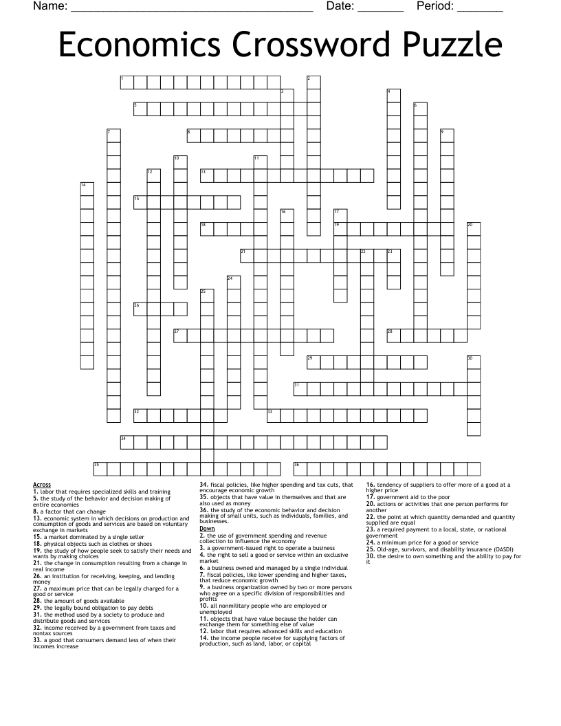 Economics Worksheet Crossword WordMint