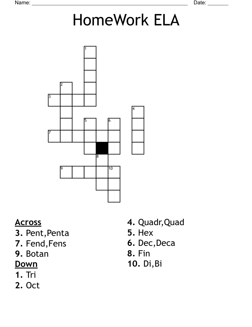 E L A Crossword Puzzle WordMint