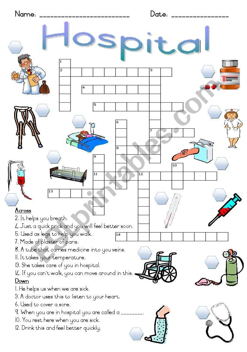 Hospital Crossword Puzzle ESL Worksheet By Joeyb1