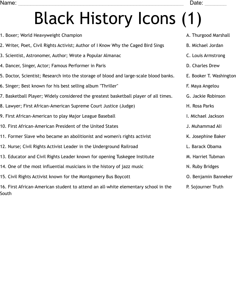 Black History Month Crossword WordMint Worksheets Library