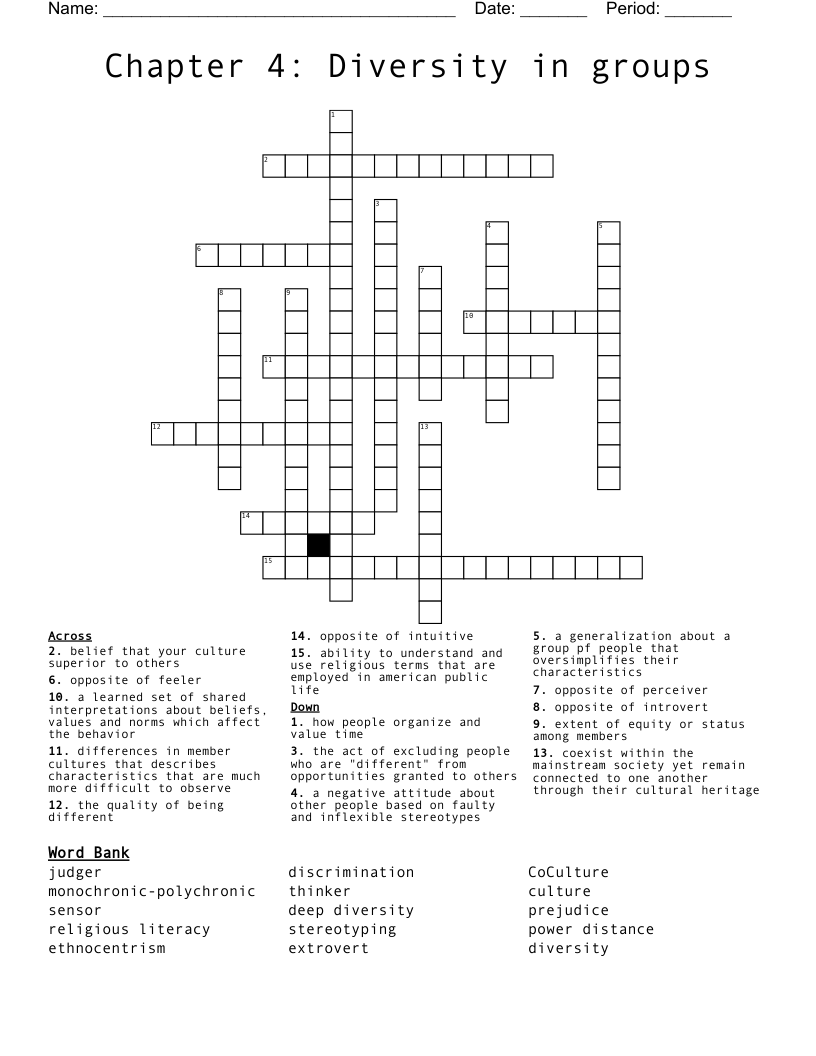 Chapter 4 Diversity In Groups Crossword WordMint