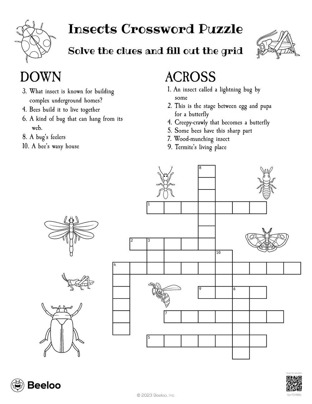 Insects Crossword Puzzle Beeloo Printable Crafts And Activities
