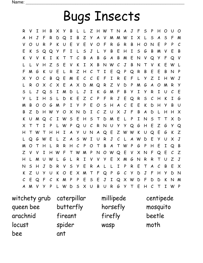 Insects Word Search WordMint