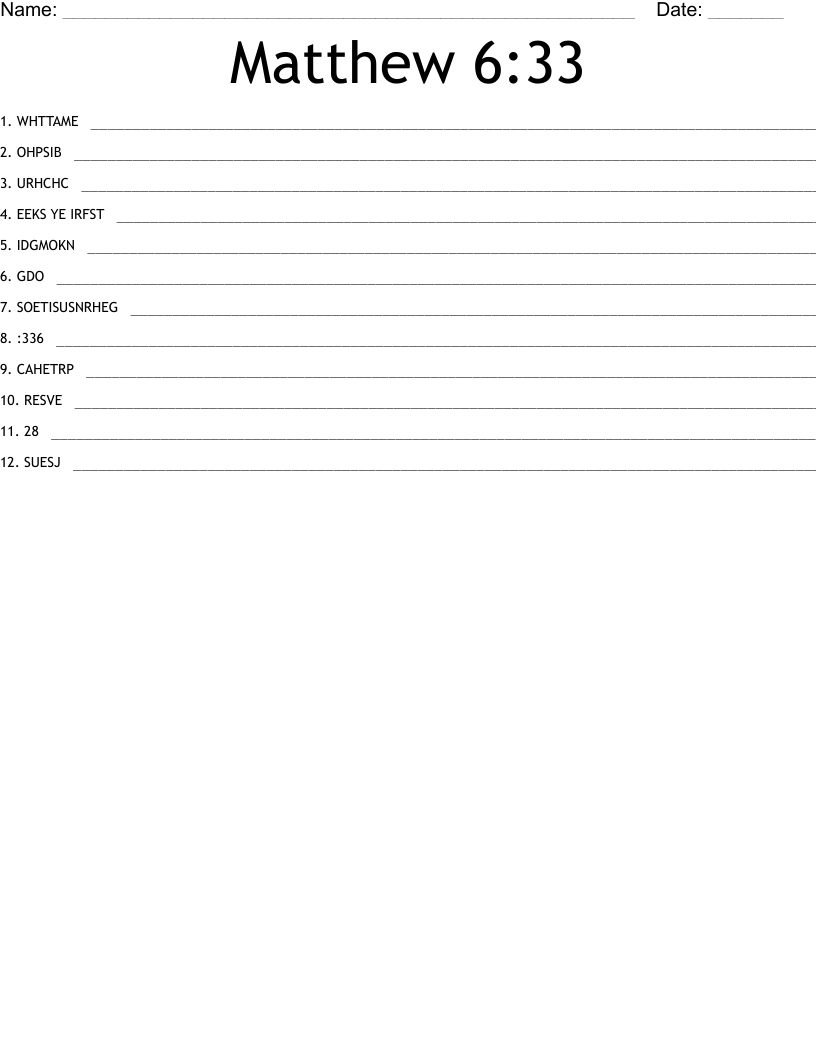 Matthew 6 33 Word Scramble WordMint