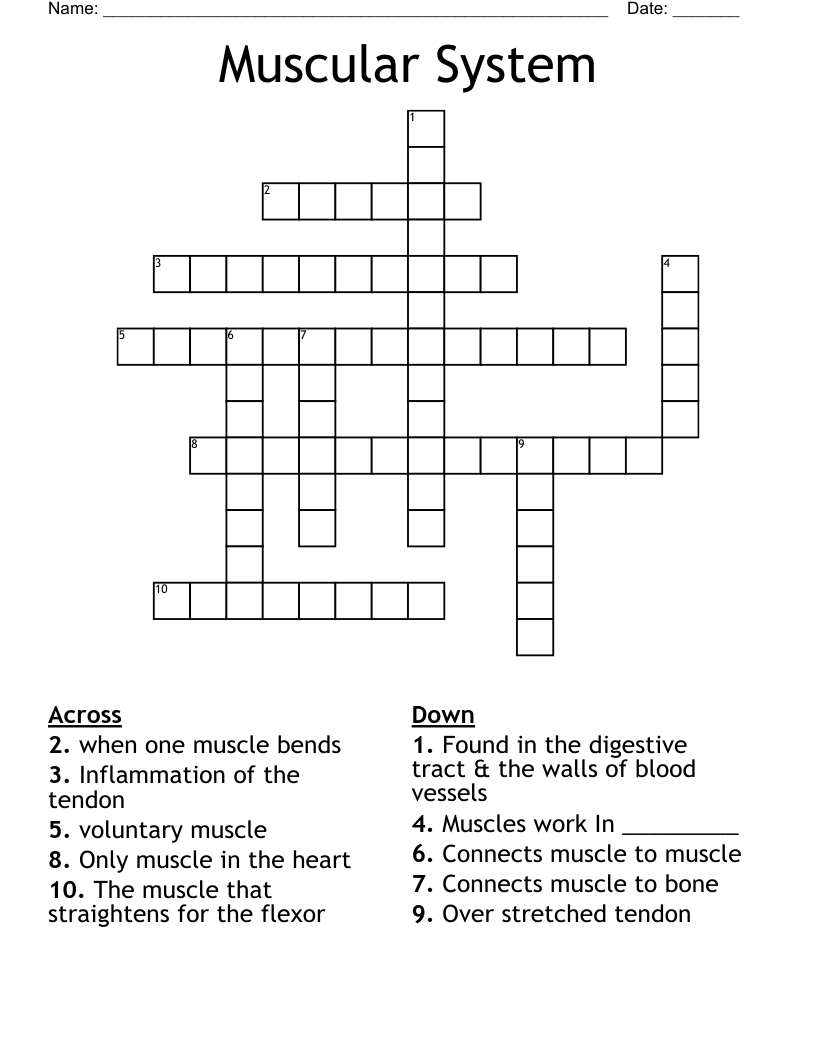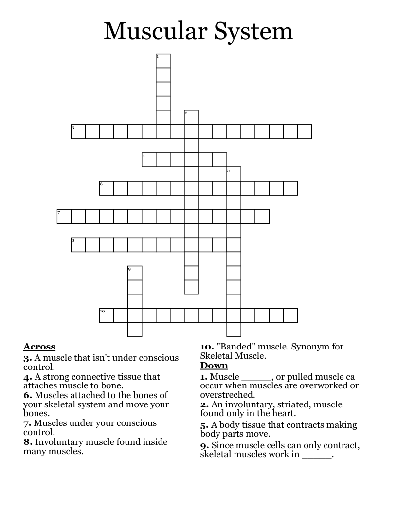 If you’re looking for a fun and interactive way to test your knowledge of the human body, why not try out a Muscle System Crossword Puzzle? This engaging activity can help you learn more about the muscles in your body while having a great time.