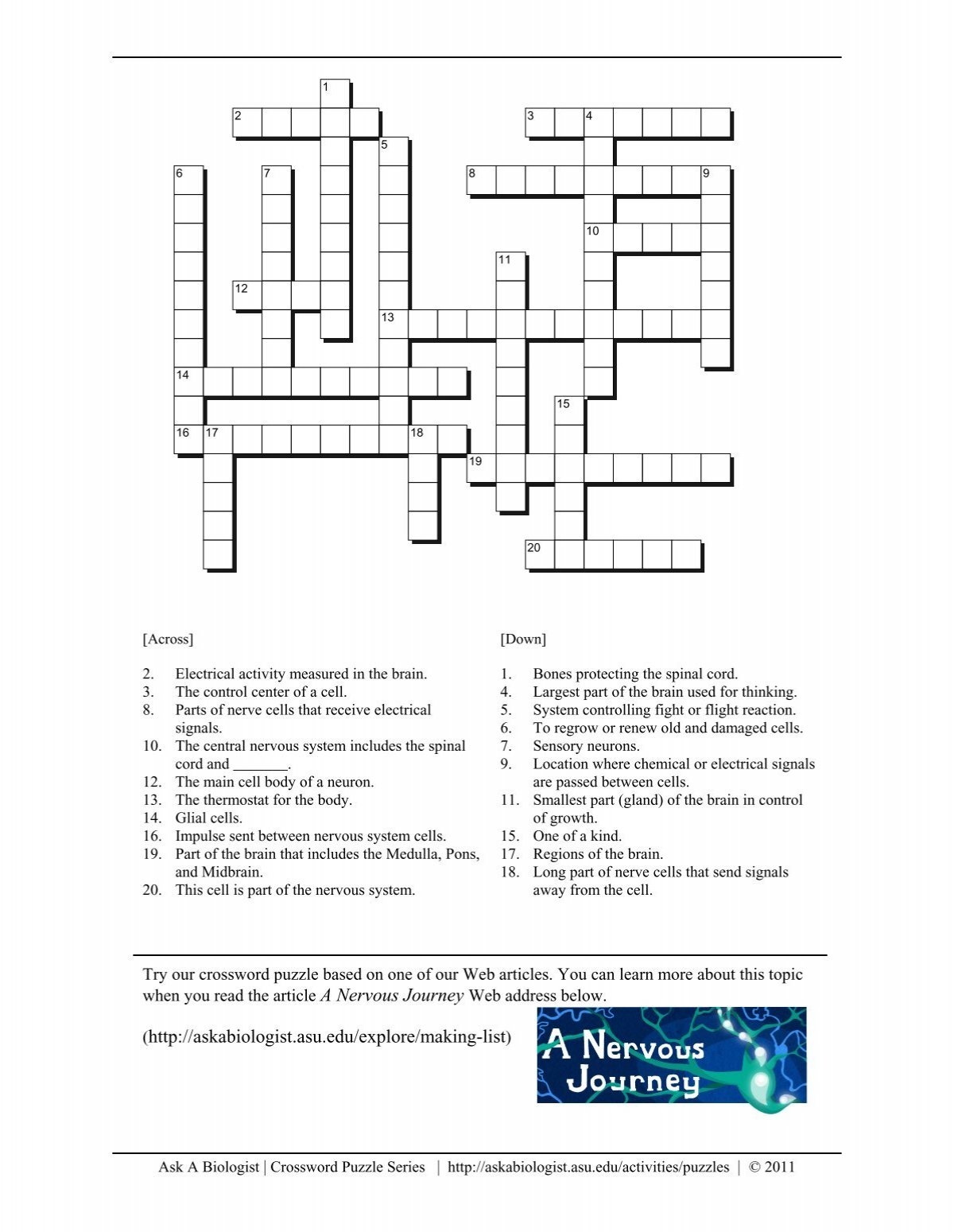 With clues ranging from nerve types to brain functions, this crossword puzzle will keep you engaged and entertained for hours. It’s a great way to study for a biology exam or just to pass the time on a lazy afternoon. So grab a pencil and get ready to sharpen your mind!