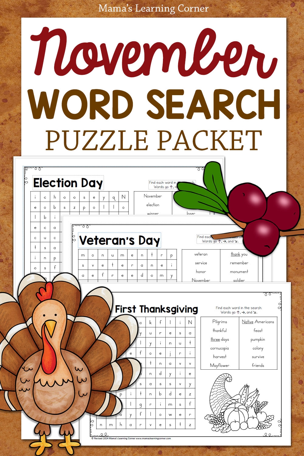 November Word Search Puzzle Packet Mamas Learning Corner