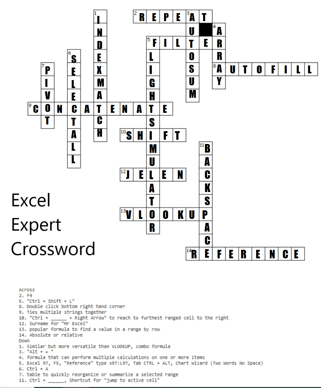 Excel Crossword Puzzle Answers Welcome To Excel Shortcut