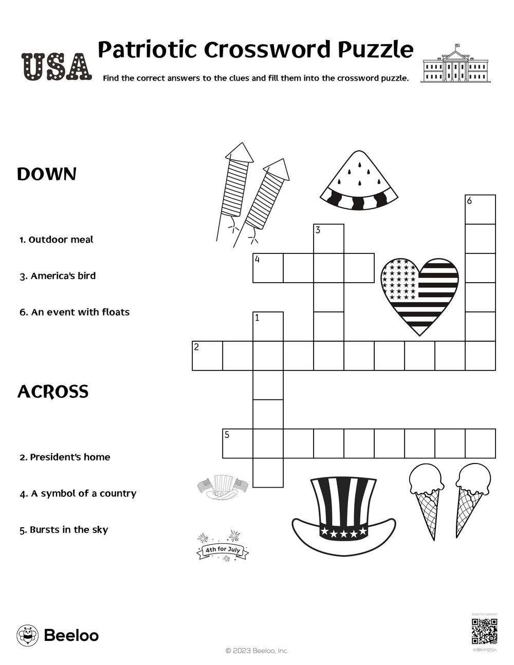 Patriotic Crossword Beeloo Printable Crafts And Activities For Kids