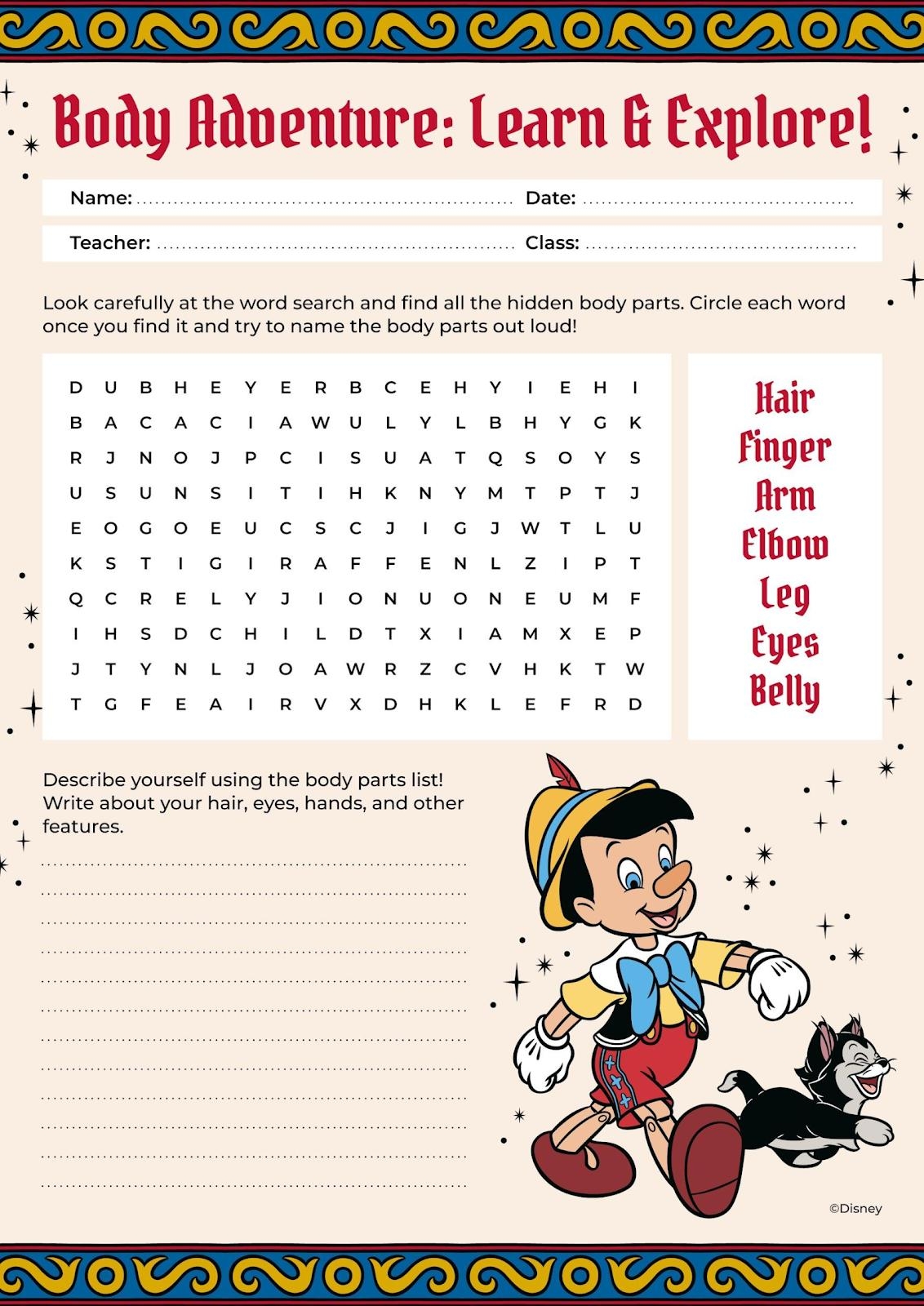 Pinnochio Body Parts Worksheet Presentation