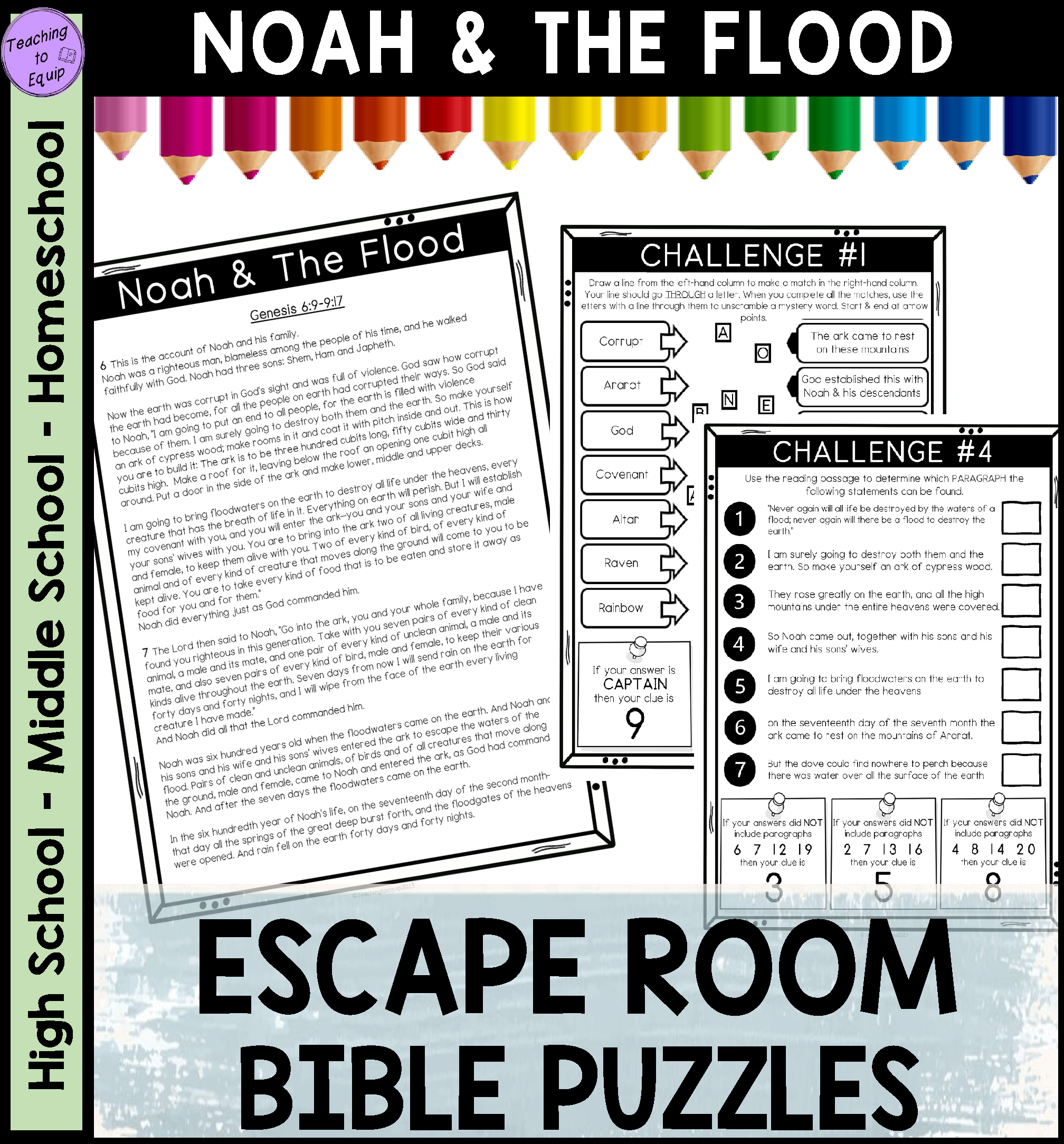 Noah U0026 The Flood ESCAPE ROOM Reading U0026 Puzzles Bible Activity Made By Teachers