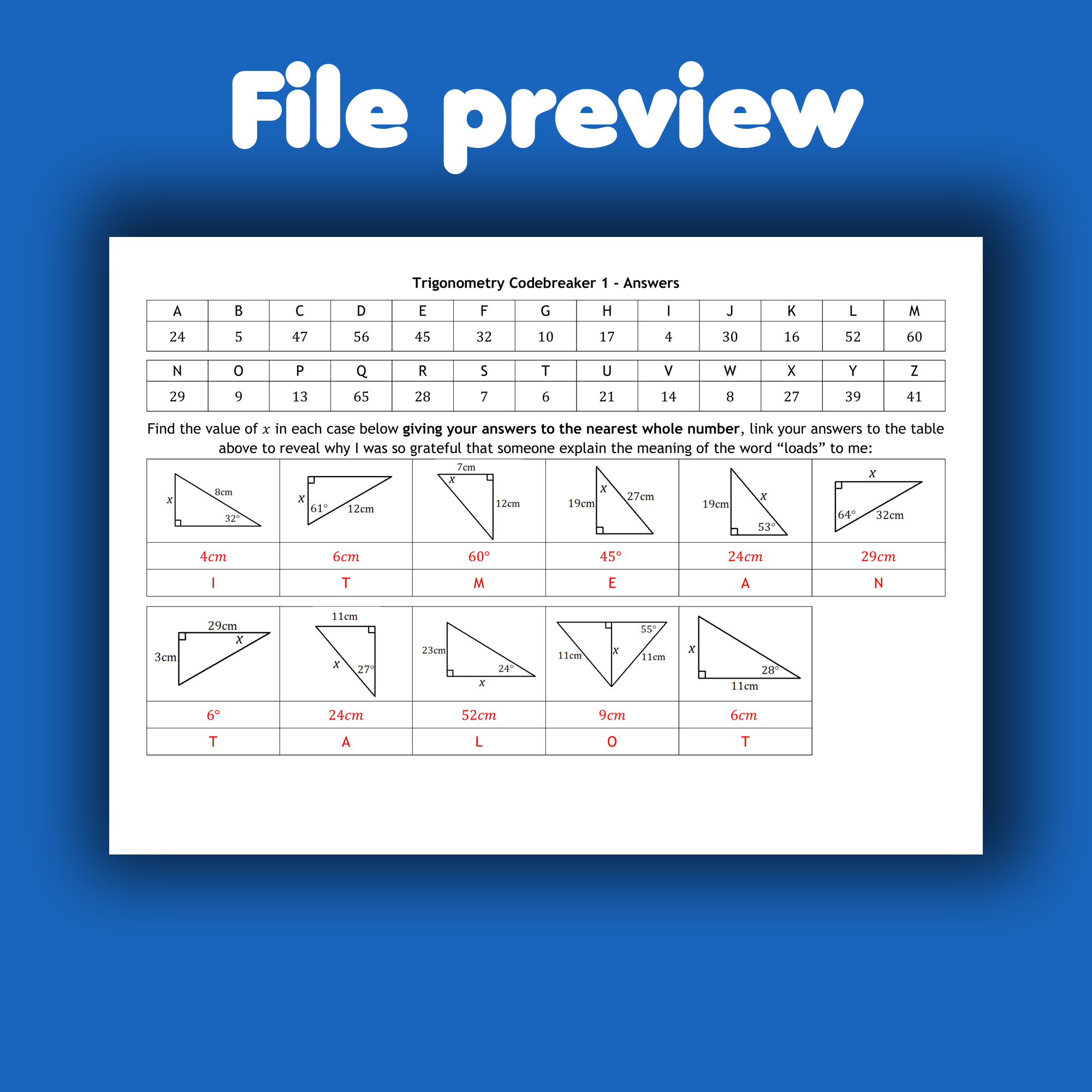 Trigonometry can be a challenging topic for many students, but with practice and perseverance, you can master it. By solving puzzles like this worksheet, you can improve your understanding of trigonometric ratios and how they apply to right triangles.