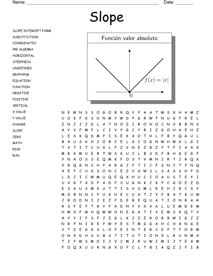 This engaging and educational crossword puzzle includes key terms related to slope, such as rise, run, slope formula, and y-intercept. It’s a great way to reinforce important concepts while having a blast.