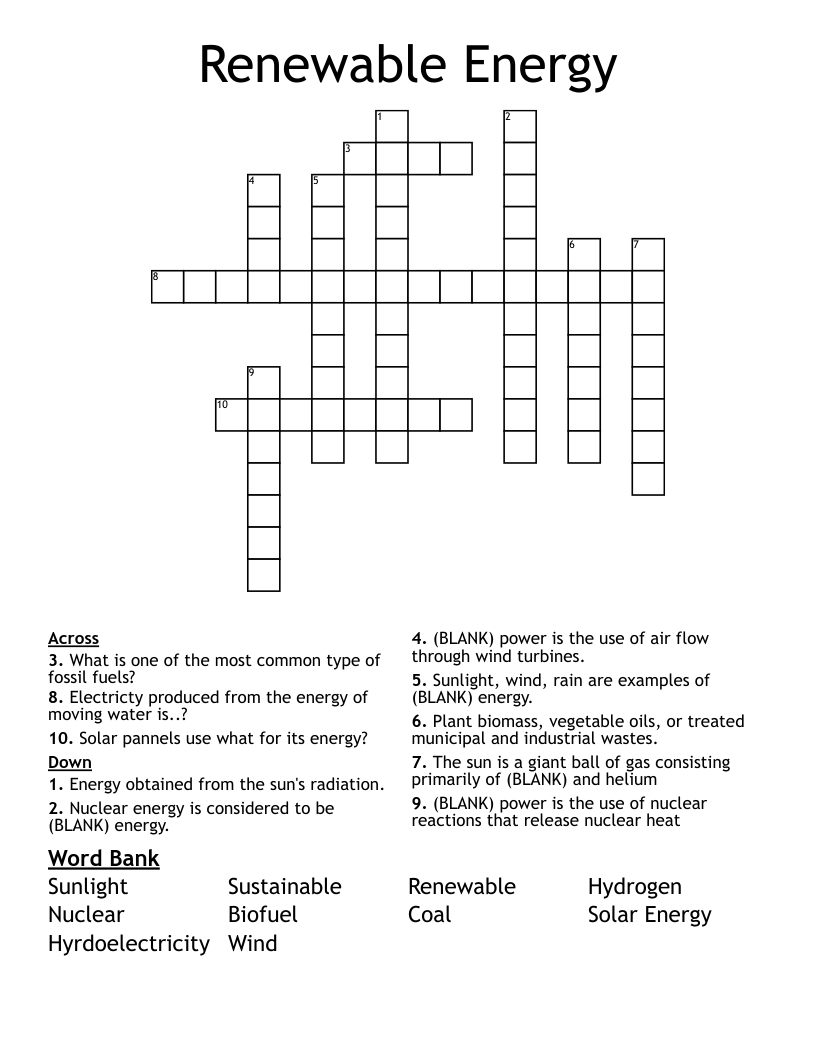 Renewable Energy Crossword WordMint