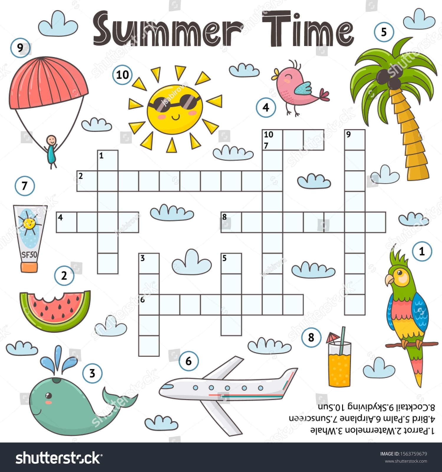 Summer Time Crossword Game Kids Funny Stock Vector Royalty Free 1563759679 Shutterstock