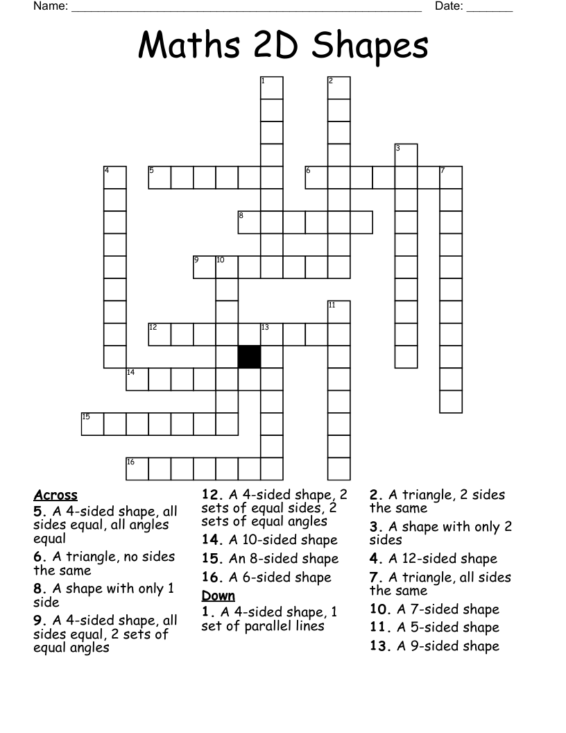 Maths 2D Shapes Crossword WordMint