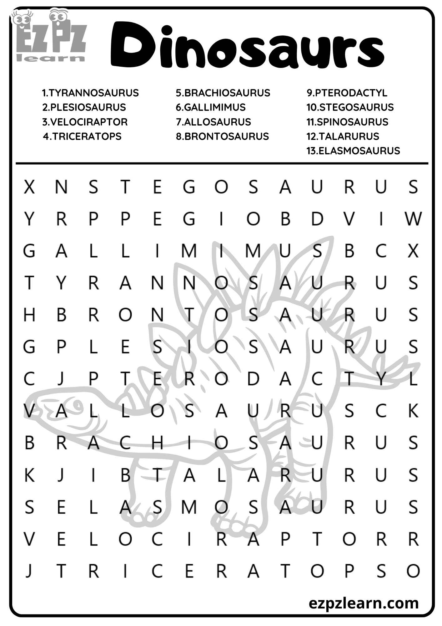 Dinosaurs Vocabulary Word Search 13 Words For Kids And ESL Free PDF Download Ezpzlearn