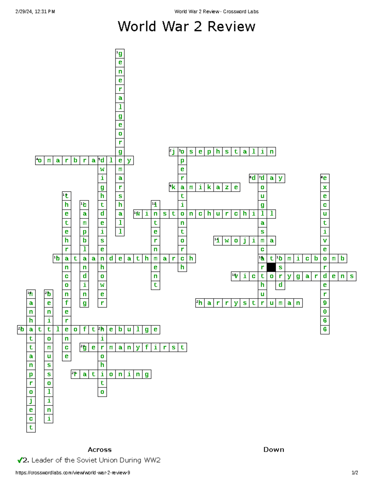 World War 2 Review Crossword Labs Leader Of The Soviet Union